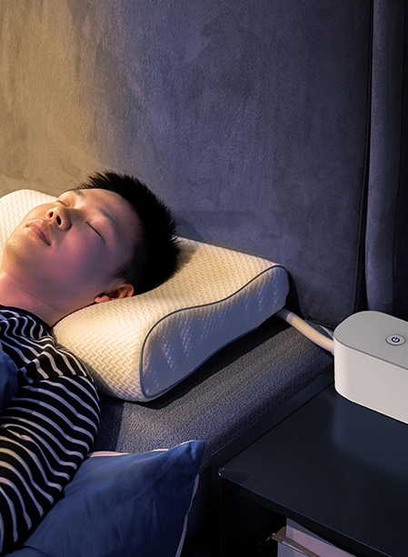 通过精准的鼾声识别、在枕识别后,利用气囊升降改变体位 ,使口咽部空气流通舒畅,可缓解打鼾的状态,起到止鼾作用,带来安稳睡眠。